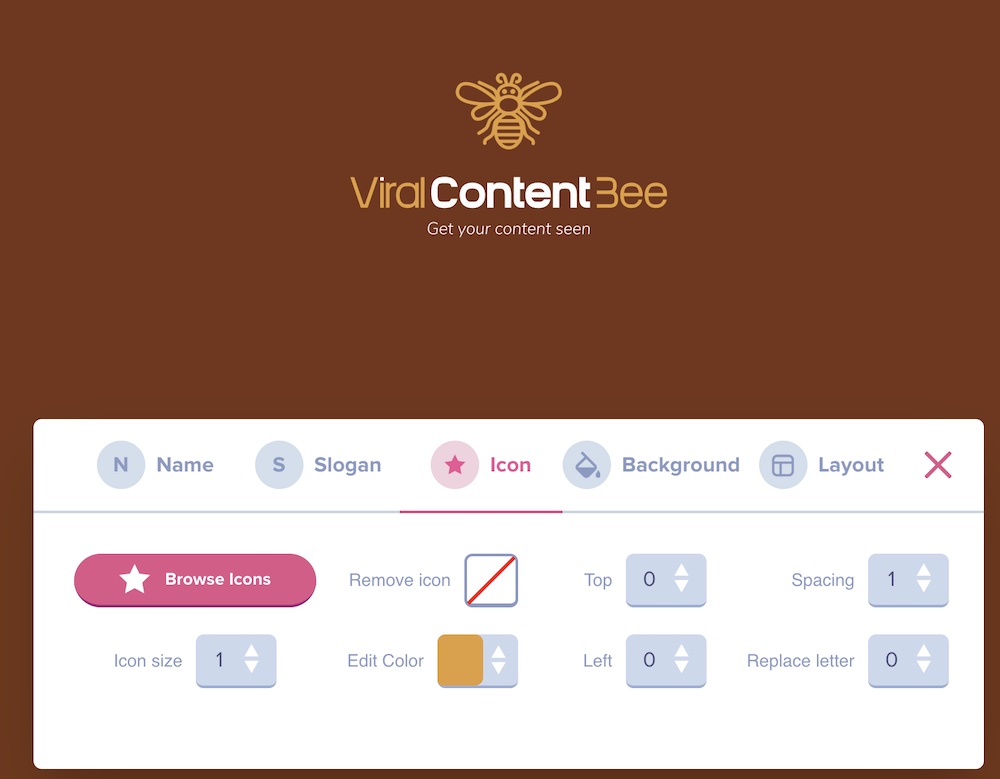 Similar to Brandmark, MarketingBlocks offers editing features (including a collection of potential icons) to alter the AI-generated versions.